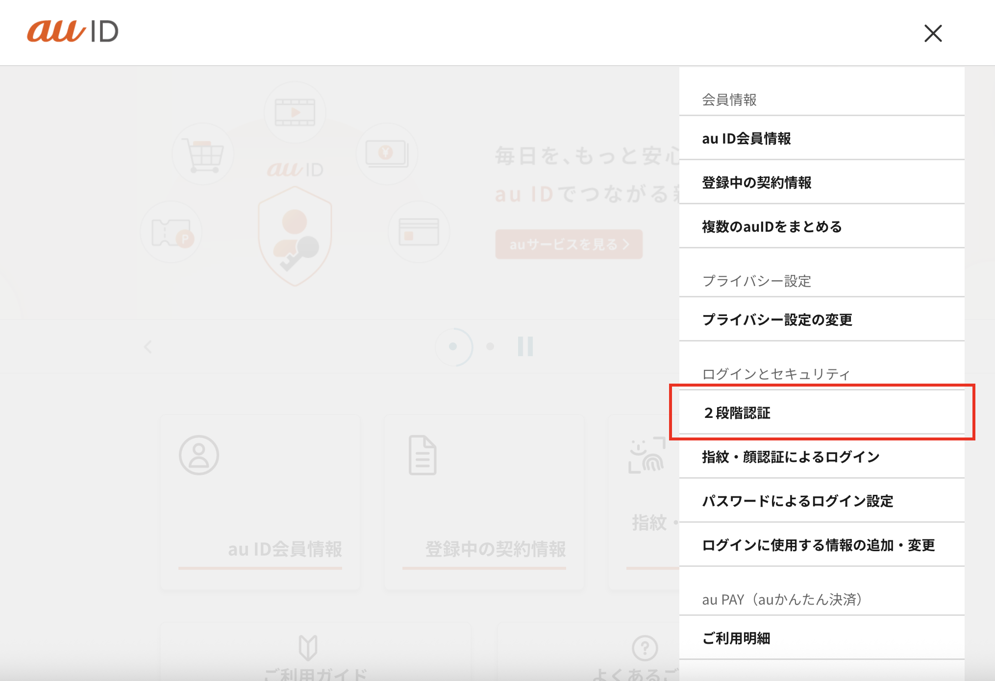au ID会員情報サイトへアクセスし、au IDでログインします。