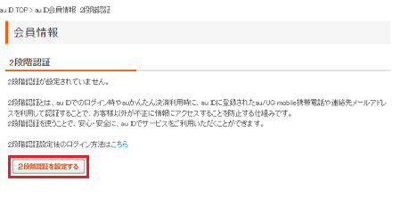 ※この画面ではなく、「2段階認証送信先」「2段階認証機器一覧」が表示された場合、2段階認証はすでに設定済みです。